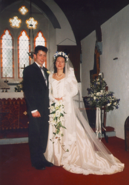 Image Source: Photo by David Williams Large Image Size: 360 by 600 pixels, 16.7 million col. Description: Chris and Michele getting bored of half-an-hours tedious snapping outside the church. Click here for the Large Image in JPEG format |